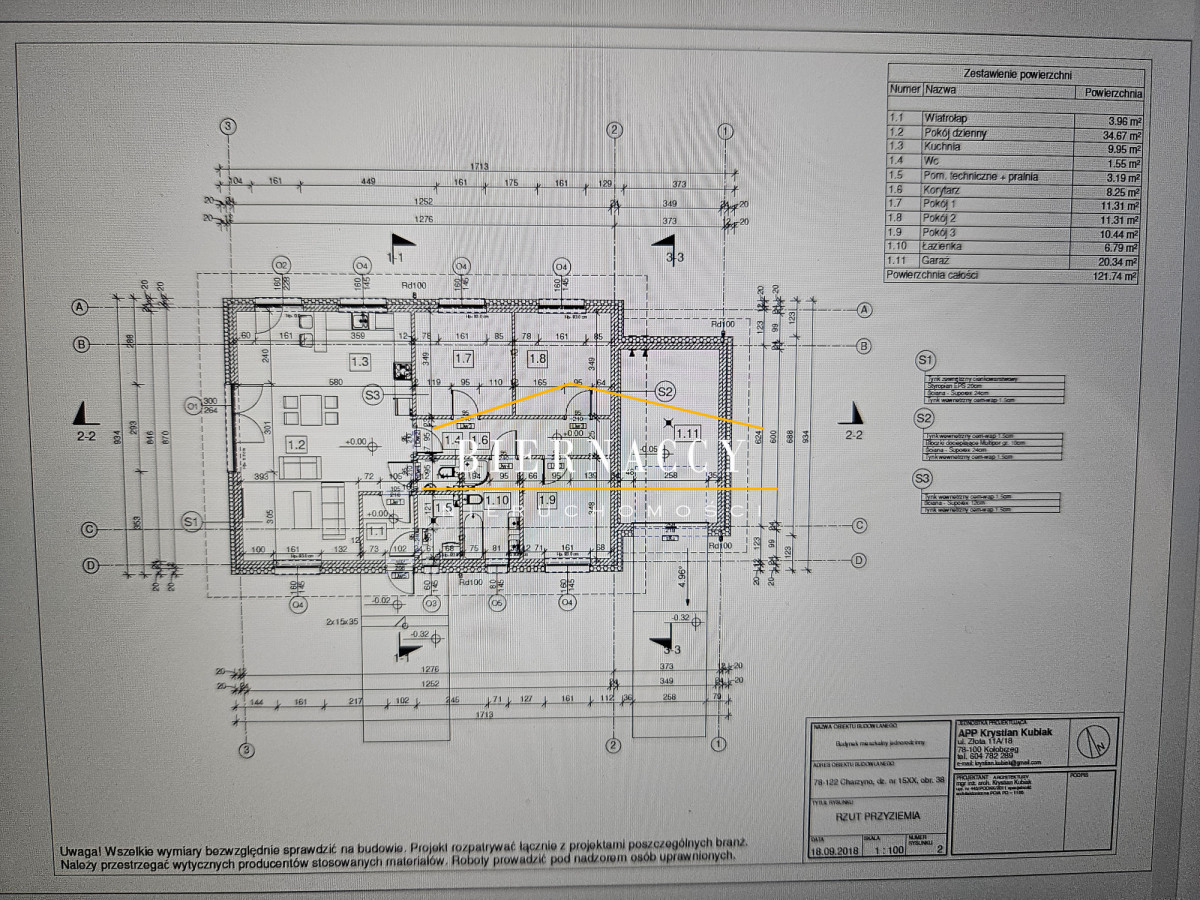 Powierzchnia domu, zgodnie z aktem notarialnym, wynosi 121,89 m², a działka 1000 mkw.