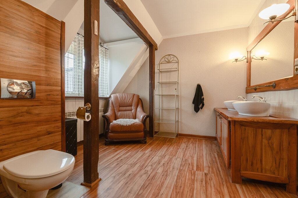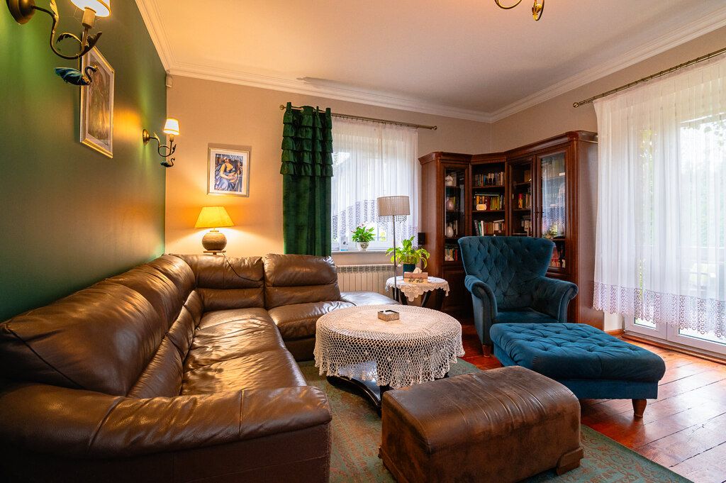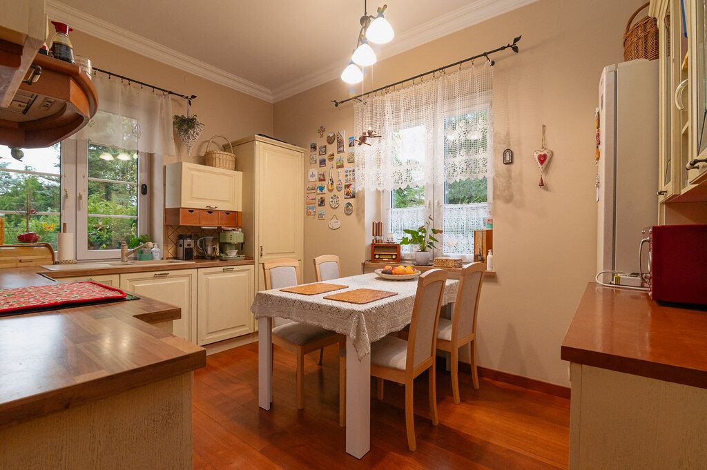 Sześć dobrze doświetlonych pokoi, dwie łazienki, strych, piwnica, ogrzewanie gazowe i kominek. Wnętrza są w pełni gotowe do zamieszkania – bez remontu, bez adaptacji. Pierwszego dnia rozpakowujesz walizki.