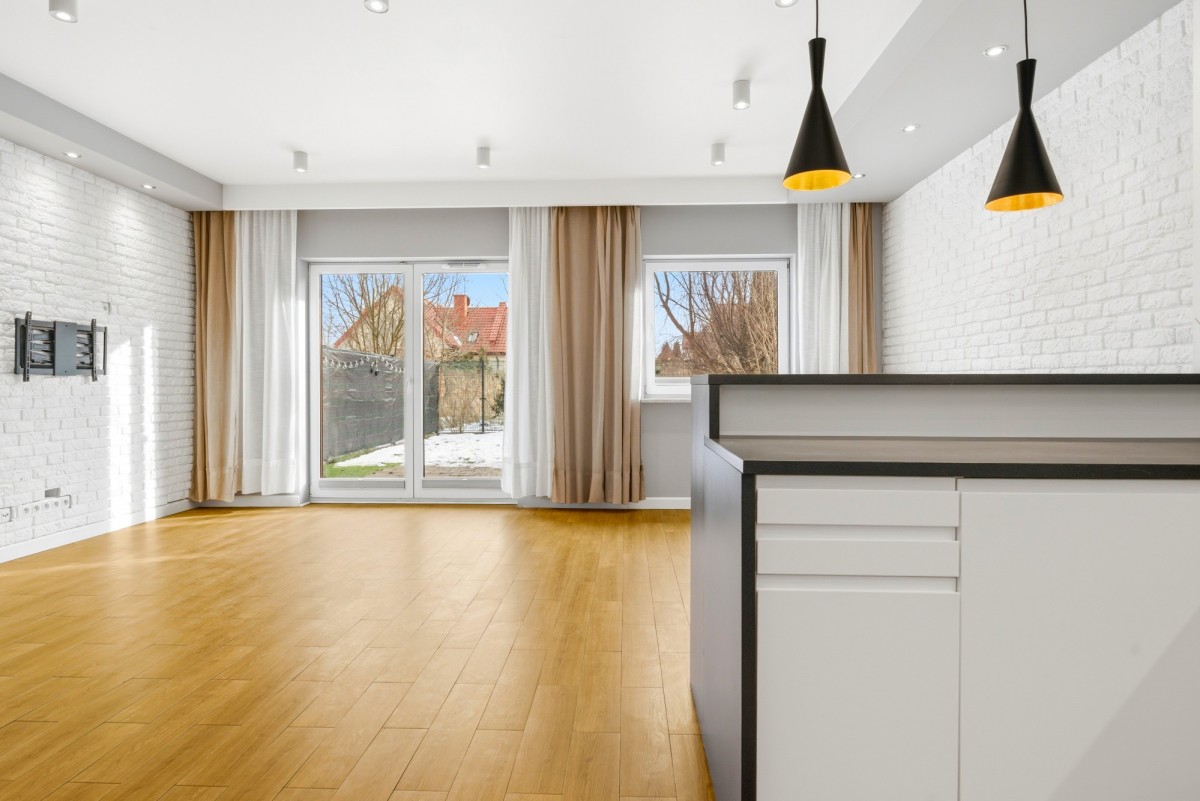 - salon z kominkiem i wyjściem do prywatnego ogródka - idealne miejsce na kawę czy spotkania z bliskimi