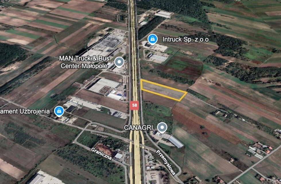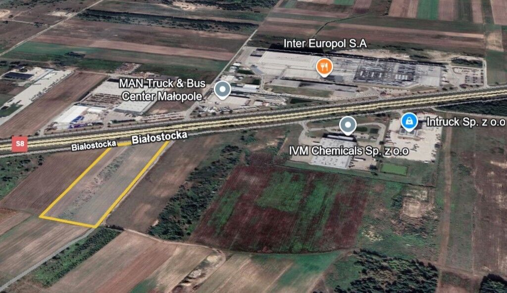 Doskonała widoczność z trasy S8, wjazd na działkę z asfaltowej drogi serwisowej, w okolicy istniejąca zabudowa produkcyjno-magazonowa renomowanych firm.