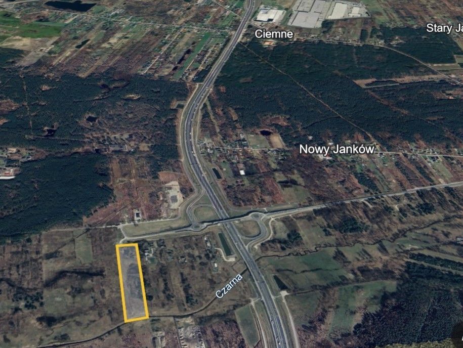 Nieruchomość gruntowa położona bezpośrednio przy zjeździe z S8, przy drodze asfaltowej.
