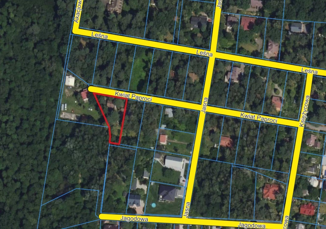 Na sprzedaż działka o powierzchni 984 m², położona przy kameralnej ulicy Kwiat Paproci, w jednej z najbardziej cenionych części Zalesia Górnego.