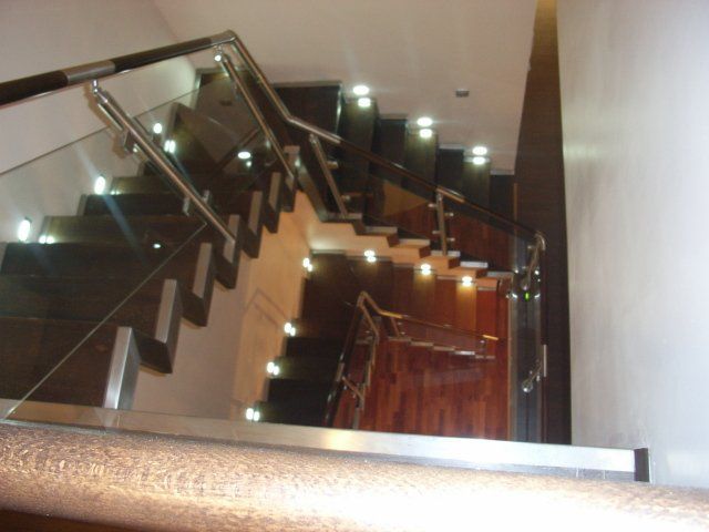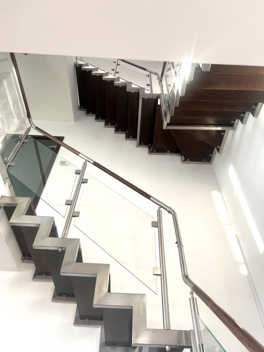 Szklane drzwi do pokoi, na tym poziomie dwa balkony.