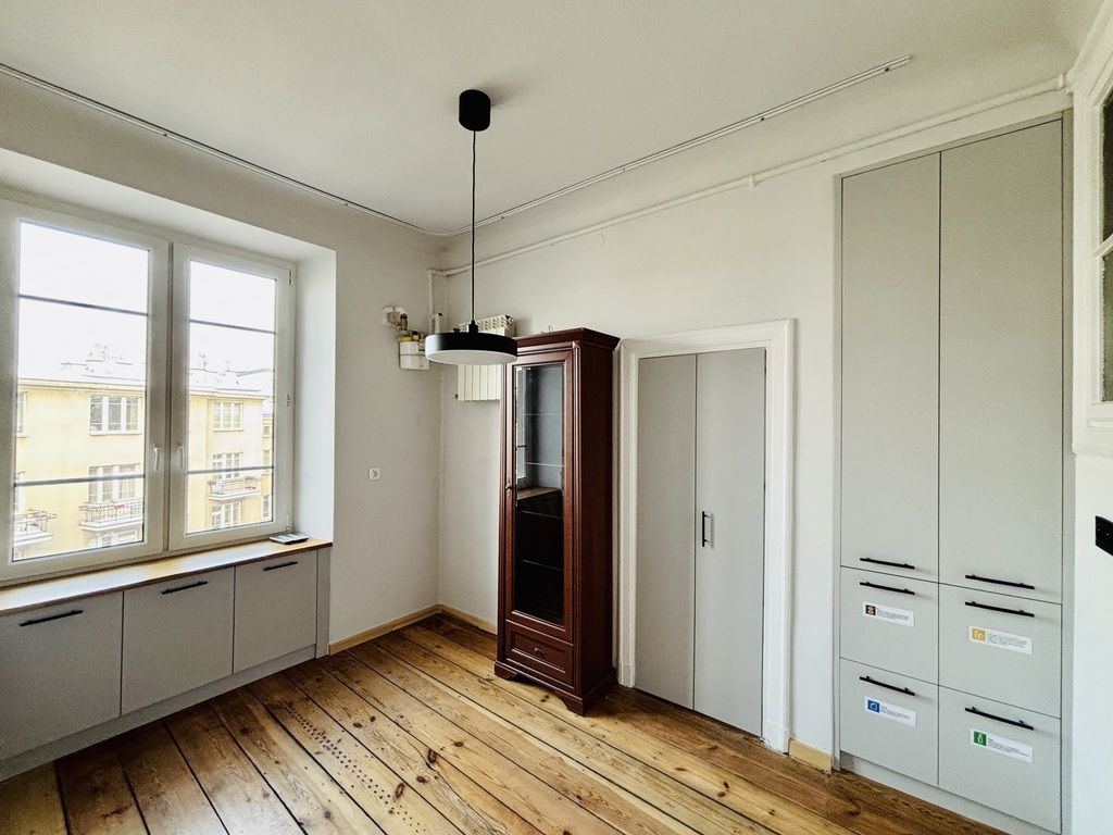 Mieszkanie znajduje się w eleganckiej, zadbanej kamienicy. Wysokie sufity, duże okna i oryginalny parkiet tworzą wyjątkowy klimat sprzyjający pracy.