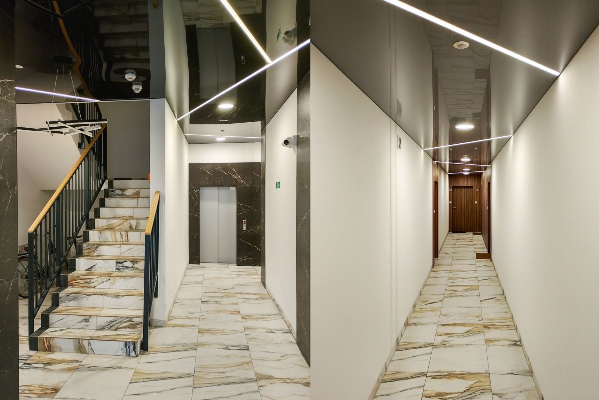 Budynek wyróżnia się nowoczesną architekturą i wysokim standardem części wspólnych.