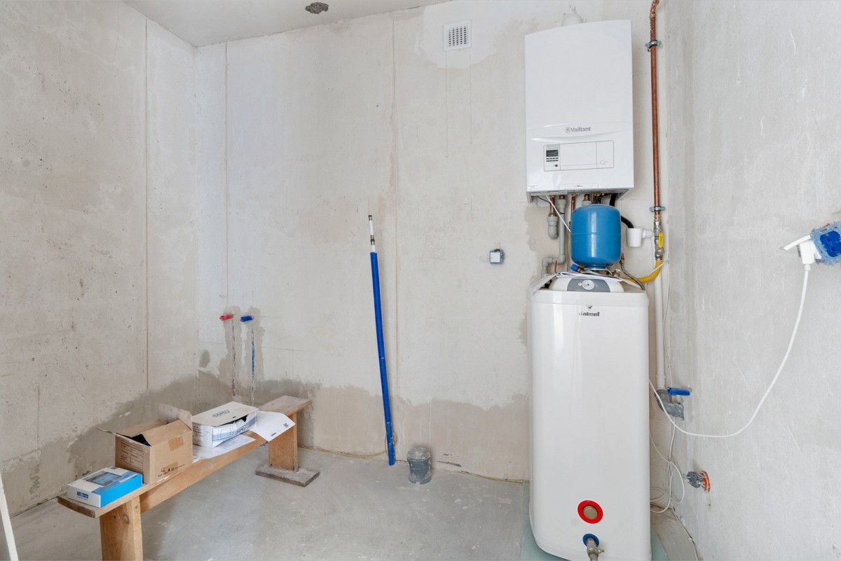 Ogrzewanie podłogowe: Zasilane nowoczesnym piecem gazowym marki Vaillant.