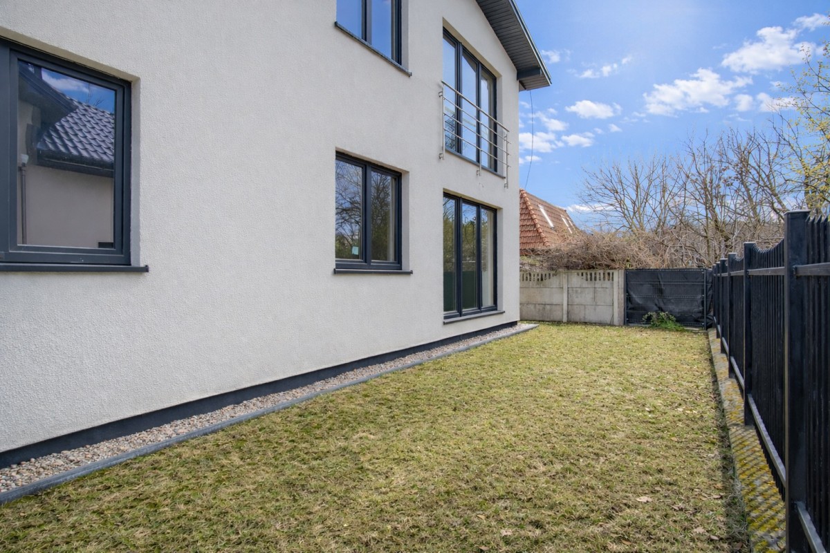 Do mieszkania przynależy prywatny ogródek o powierzchni 61 m2 oraz dodatkowe miejsce postojowe przed budynkiem. Lokalizacja zapewnia błyskawiczny dostęp do Warszawy i centrum handlowego M1 (4 minuty autem), przy jednoczesnym sąsiedztwie lasu (4 minuty pieszo). W promieniu 1,3 km znajduje się pełna infrastruktura: szkoła, przedszkole oraz centrum handlowe Prima Park.