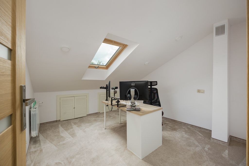 MATERIAŁY: Drzwi wejściowe antywłamaniowe, okna PCV oraz drewniane (poddasze), na podłodze parkiet oraz gres, a na poddaszu wykładzina.
