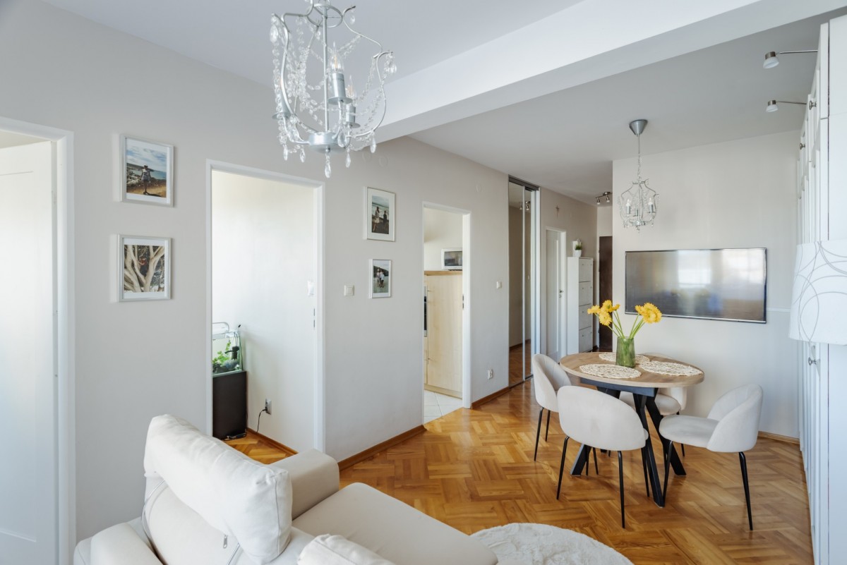 Na sprzedaż przytulne i bardzo funkcjonalne mieszkanie o powierzchni 58,3 m², położone na 1 piętrze w budynku z windą przy ul. Książkowej 9F na warszawskich Nowodworach.