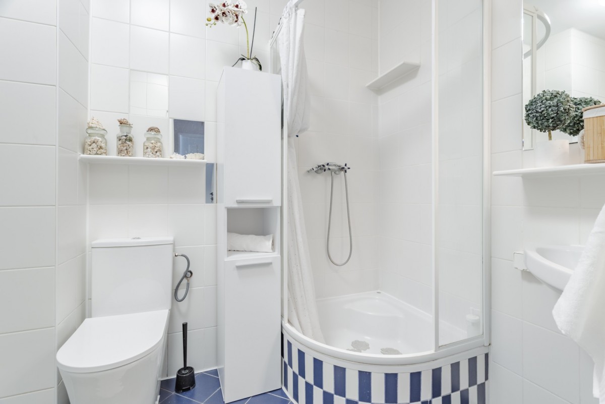 - łazienka z prysznicem, WC, umywalką oraz pralką i suszarką,