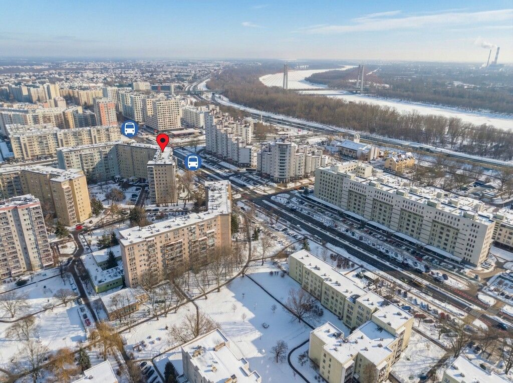Przystanek autobusowy – ok. 3 minuty pieszo. Dojazd do centrum – ok. 20 minut. Szybki wyjazd w kierunku Mostu Łazienkowskiego i Saskiej Kępy.