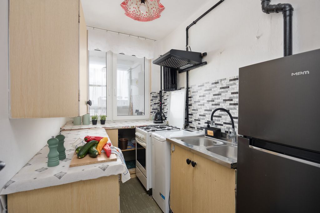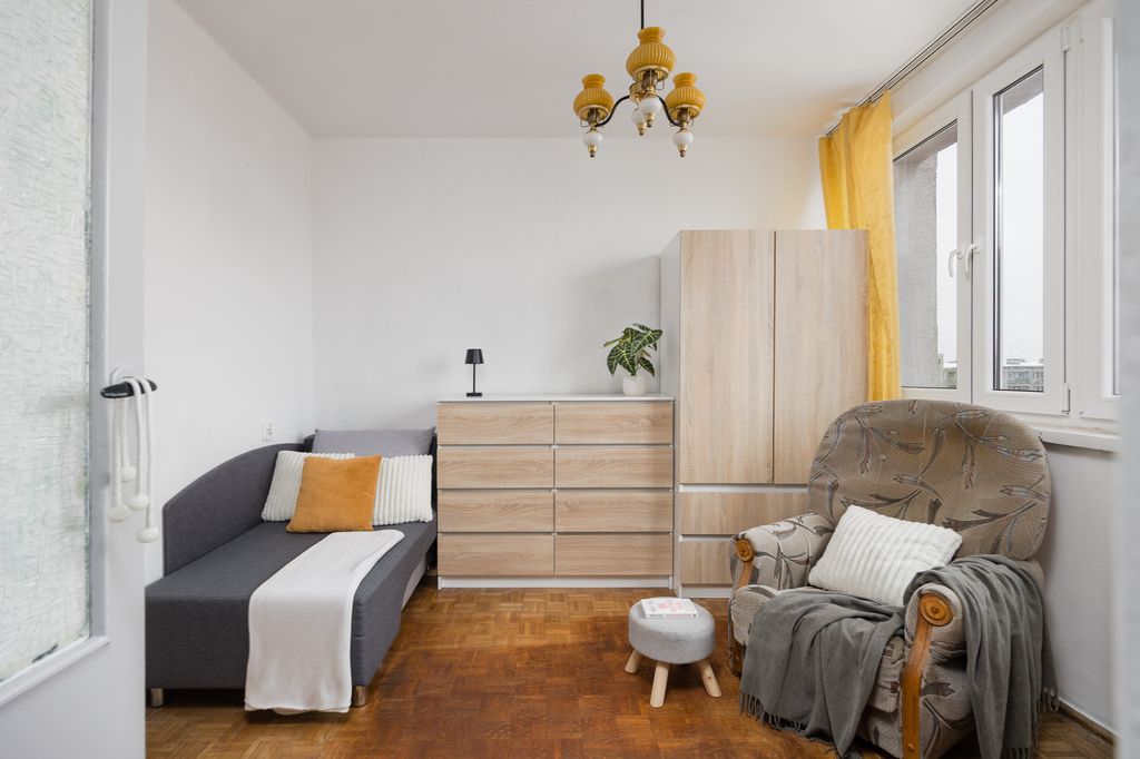 Układ obejmuje trzy pokoje z oddzielną kuchnią, łazienkę oraz przedpokój. Dodatkowo do dyspozycji jest mały, oszklony balkon. Kuchnia daje możliwość otwarcia na salon i stworzenia nowoczesnej strefy dziennej z aneksem. Mieszkanie wymaga remontu, co pozwala nowemu właścicielowi w pełni dopasować przestrzeń do własnych potrzeb. Na podłodze znajduje się oryginalny parkiet. Ogrzewanie oraz ciepła woda pochodzą z sieci miejskiej. Okna PCV. Do lokalu przynależy piwnica.