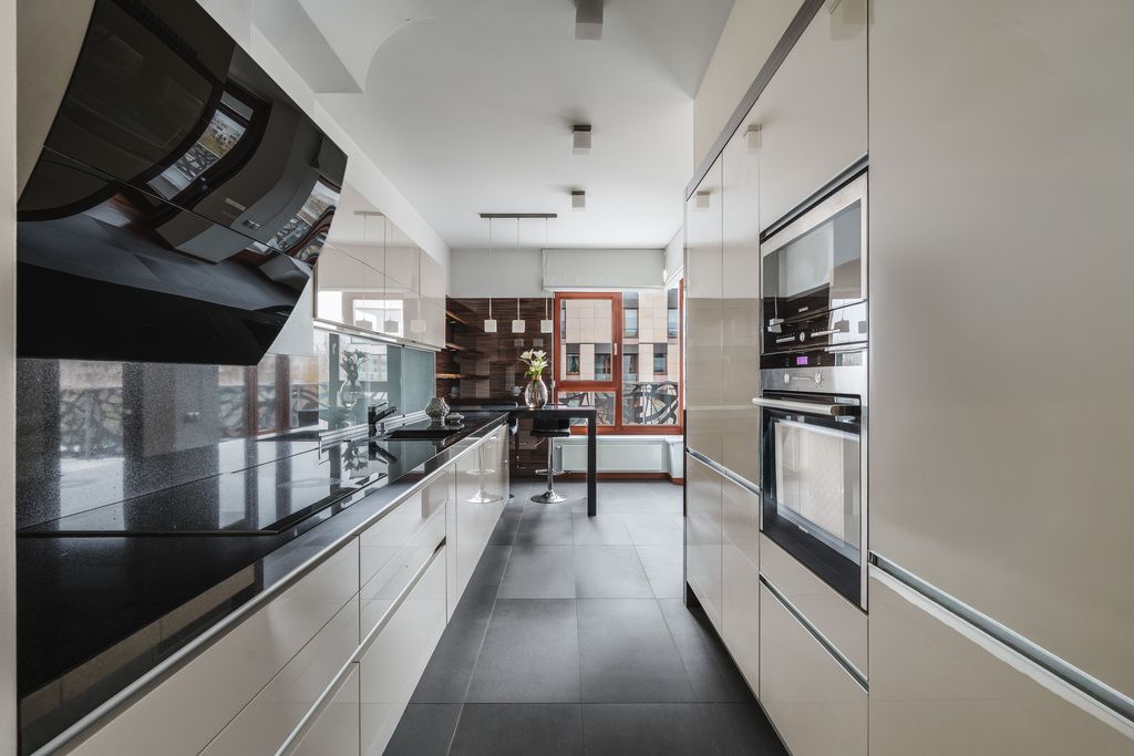 - otwartej kuchni z pełną zabudową meblową i wyspą,