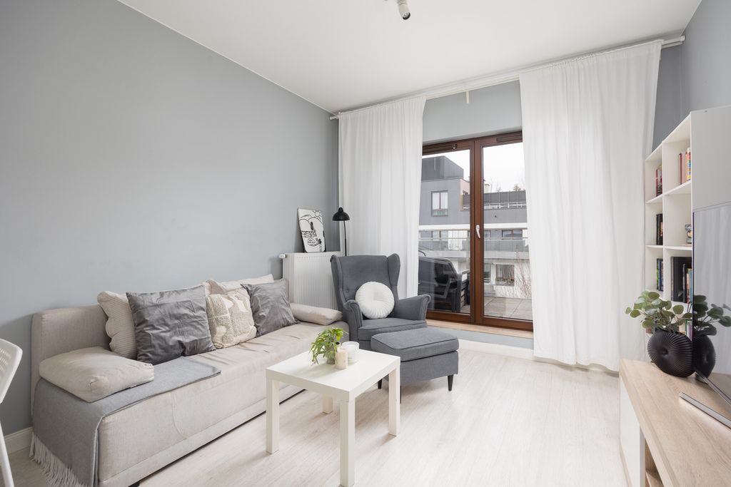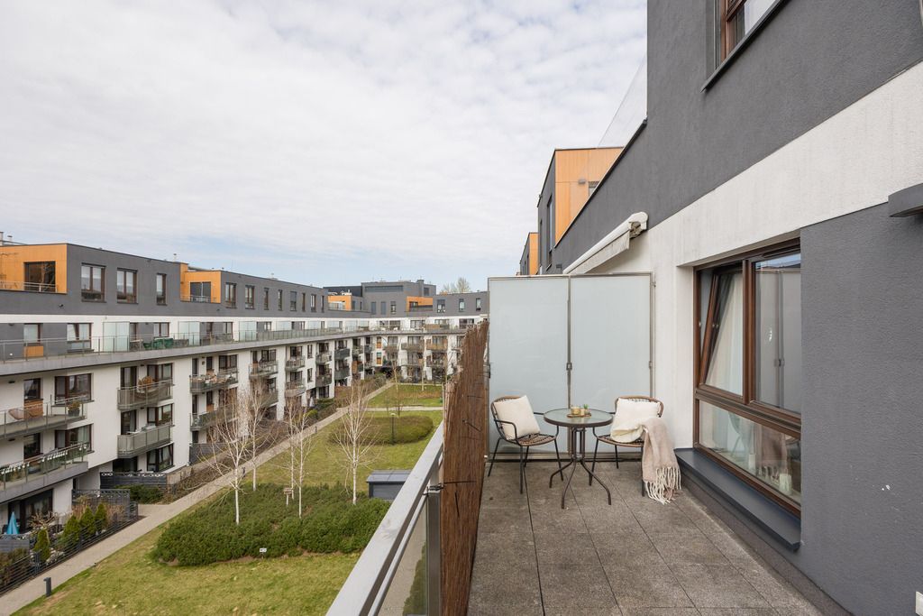 Jasne dwupokojowe mieszkanie położone przy ul. Sarmackiej 4A, w samym sercu Miasteczka Wilanów. Lokal znajduje się na 3 piętrze 4-piętrowego budynku apartamentowego z windą z 2017 roku.