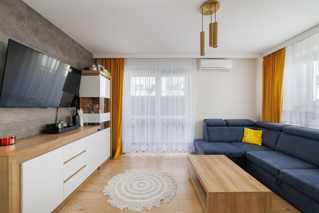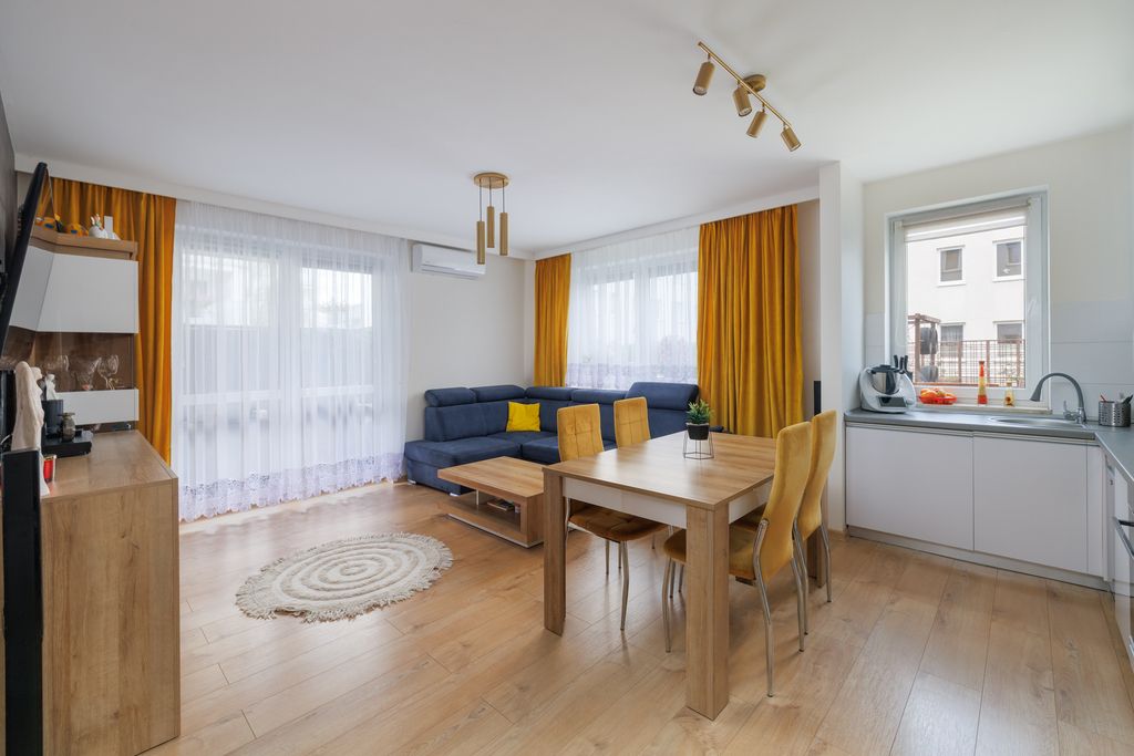 To przytulne mieszkanie na parterze w Ząbkach łączy nowoczesny design z funkcjonalnością i komfortem — idealne zarówno dla pary, rodziny, jak i jako inwestycja na wynajem.