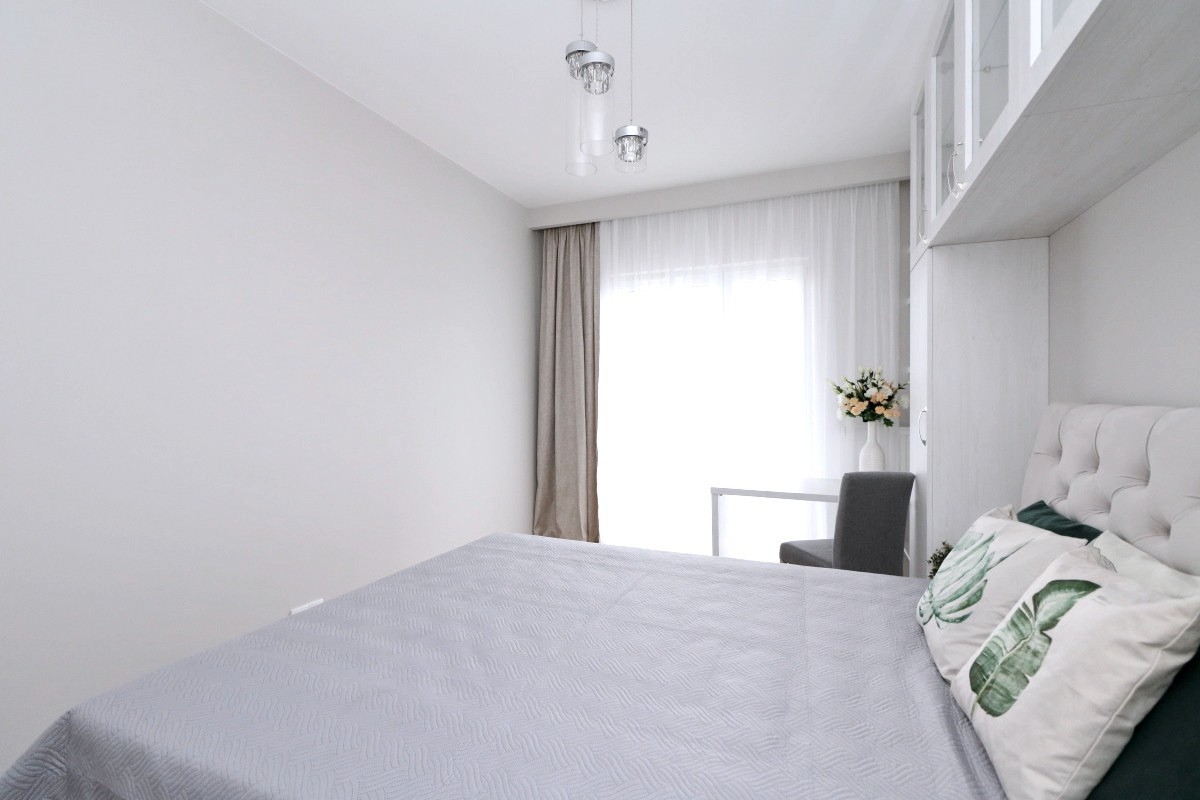 Apartament został wykończony w wysokim standardzie, z dbałością o najmniejszy szczegół. Wysokość pomieszczeń oraz wysokie okna dają poczucie przestrzeni.