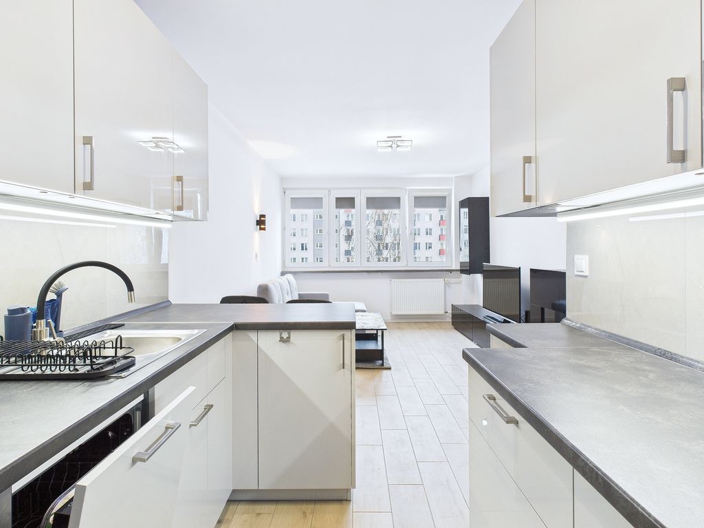 Przedstawione ogłoszenie ma charakter wyłącznie informacyjny i nie stanowi oferty w rozumieniu art. 66 par. 1 Kodeksu cywilnego. Biuro Nieruchomości dokłada starań, aby treść ogłoszeń była rzetelna i aktualna, jednak nie ponosi odpowiedzialności za ewentualne nieścisłości, błędy lub nieaktualność ogłoszenia.For rent , a newly renovated , comfortable , fully equipped 2-room apartment with an area of 36.7 m² , located on the 5th floor of a building with an elevator at 96 Zygmunta Modzelewskiego Street in Mokotów.