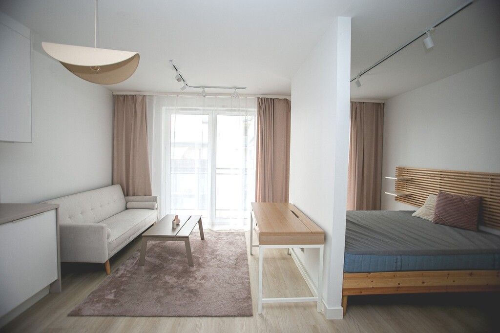 Do wynajęcia jasne, komfortowe mieszkanie zlokalizowane w nowoczesnym budynku przy ul. Żupniczej. Idealne dla jednej osoby, w pełni wyposażone i gotowe do zamieszkania od zaraz.