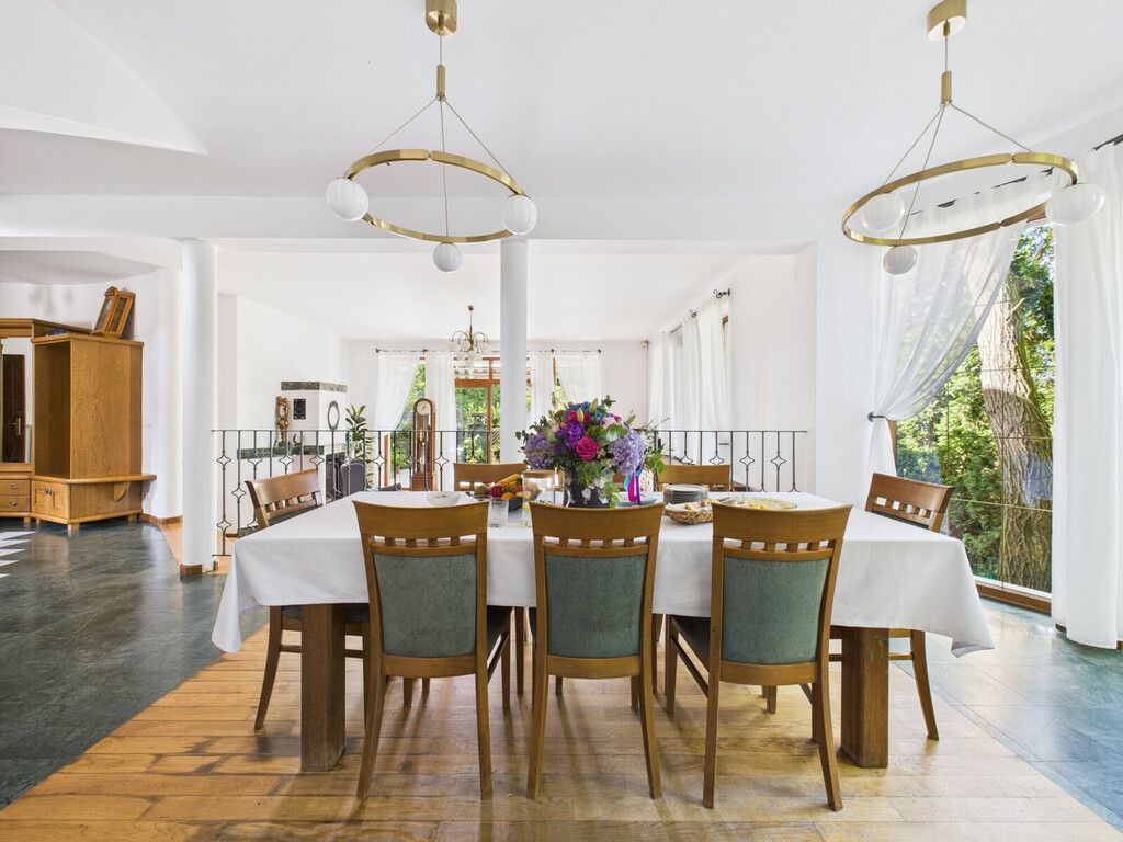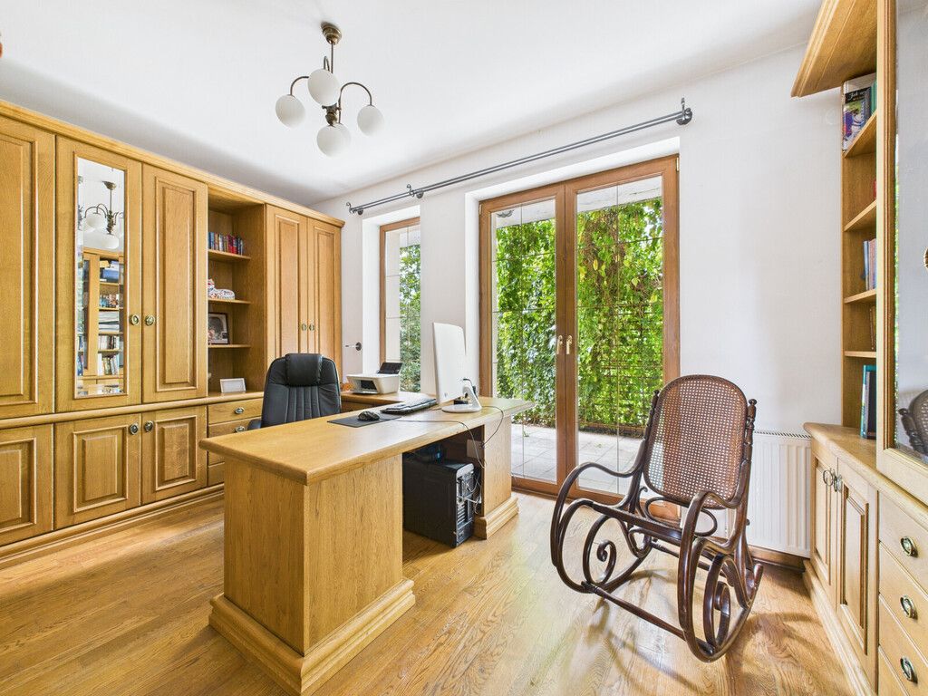 Ten solidnie wybudowany dom w 2001 roku z cegły, dachówki ceramicznej , miejscem na garażowanie 4 samochodów, ze stolarką dębową na zamówienie - kutymi poręczami i sufitami na ponad 5 metrów wysokości - mogą być podstawą dla niejednej dużej rodziny lub rodzinnego biznesu.