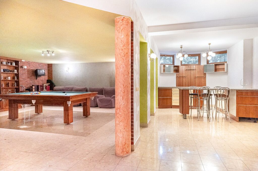 Wyjątkowy dom inspirowany był architekturą małych współczesnych pałacy - tak aby mieszkańcy mieli maksymalną wygodę i otwartą przestrzeń na ogród, zaprojektowano strefę fitness, barek z salą do imprez i salą bilardową - a wszystko to na granicy Białołęki Dworskiej i Nieporętu w drodze nad Zalew Zegrzyński pod Warszawą.