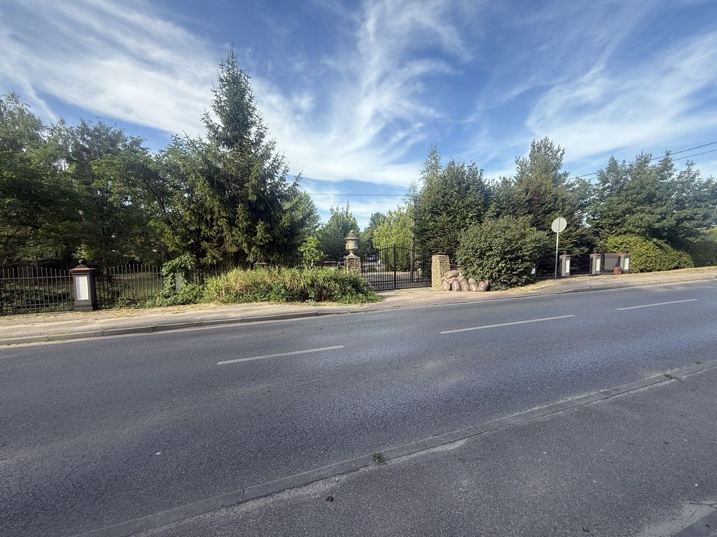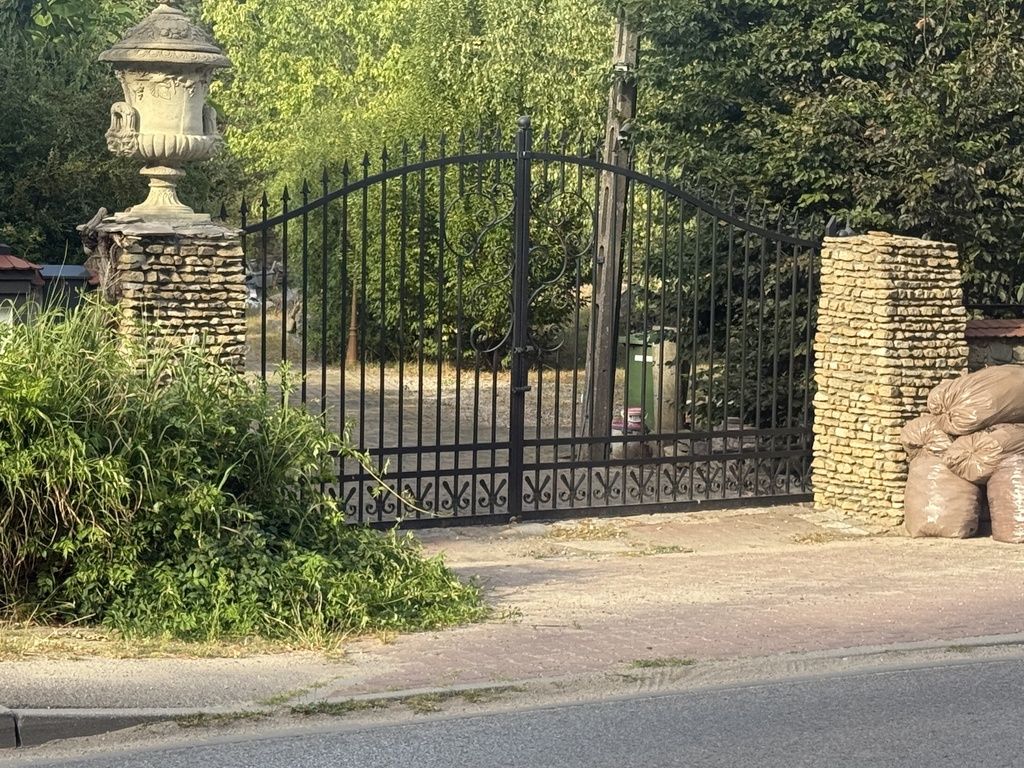 Działka od strony ulicy oddzielona jest eleganckim ogrodzeniem z efektowną, zautomatyzowaną bramą wjazdową, a wjazd na posesję został wyłożony kostką brukową, co podkreśla reprezentacyjny charakter nieruchomości.