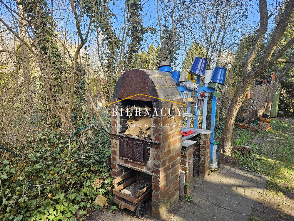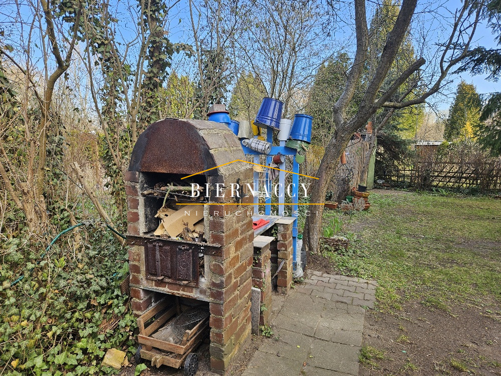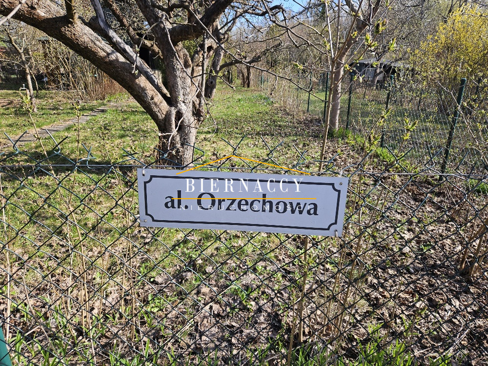 Cały kompleks ogródków działkowych położony jest w zielonej części Warszawy blisko kanałku. Kameralnie. Ogródek działkowy cały ogrodzony. Całym terenem opiekują się gospodarz. Bardzo mili sąsiedzi i przyjazna, pomocna grupa działkowiczów. Działka jest położona przy ulicy Orzechowej - jest to teren rekreacyjny. Działka ogrodzona żywopłotem zadbanym i pielęgnowanym regularnie. Na działce rośnie smaczna wiśnia i inne drzewa owocowe np. grusza i brzoskwinia oraz pnący się winogron. Działka jest zagospodarowana na rekreacje, można sobie odpocząć, poleżeć na wygodnym leżaku lub zrobić grill. Na działce są świerki i rośnie piękna rozłożysta sosna jest sporo cienia. Działkę odwiedza wiewiórka, która czeka na orzechy i lubi posiedzieć na pięknym świerku. Są też pięknie śpiewające ptaki,. Na działce rosną drzewa kwitnące np. bzy - biały, fioletowy i różowy, jest też róża i konwalie oraz hibiskus. Działka jest bardzo zadbana i na bieżąco koszony ma trawnik i grabione są liście, żywopłot przycinany. Na działce stoi domek, a za nim jest narzędziownia i miejsce na taczki i grabie. Jest też zadaszony taras. W domku jest cały zestaw do wypoczynku - leżaki i stół i wersalka oraz szafa i komoda. Domek ma tez łazienkę z WC. Pod domkiem jest tez murowana piwniczka. I jest też grill i umywalka polowa. Na działce jest woda. Śmiało można zapraszać gości i wypoczywać z nimi w ogrodzie na świeżym powietrzu. W domku jest prąd i można sobie przyrządzić posiłek lub zaparzyć dobra kawę, a grill na świeżym powietrzu to sama przyjemność.