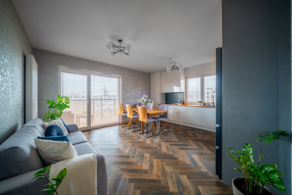 Apartament zaprojektowany i wykończony w wysokim standardzie. Świetnie rozplanowana i wykorzystana przestrzeń. Meble w kuchni i łazience wykonane na zamówienie przez stolarza. Mieszkanie wykończone przy użyciu bardzo dobrej jakości materiałów (m. in.parkiet w pokojach i salonie, szafki - fornir, meble na zamówienie, stół drewniany) z dbałością o szczegóły i detale. Salon z wyjściem na przepiękny duży i przestronny balkon 9,45 m2. Budynek wybudowany w podwyższonym standardzie z 2021 roku.
