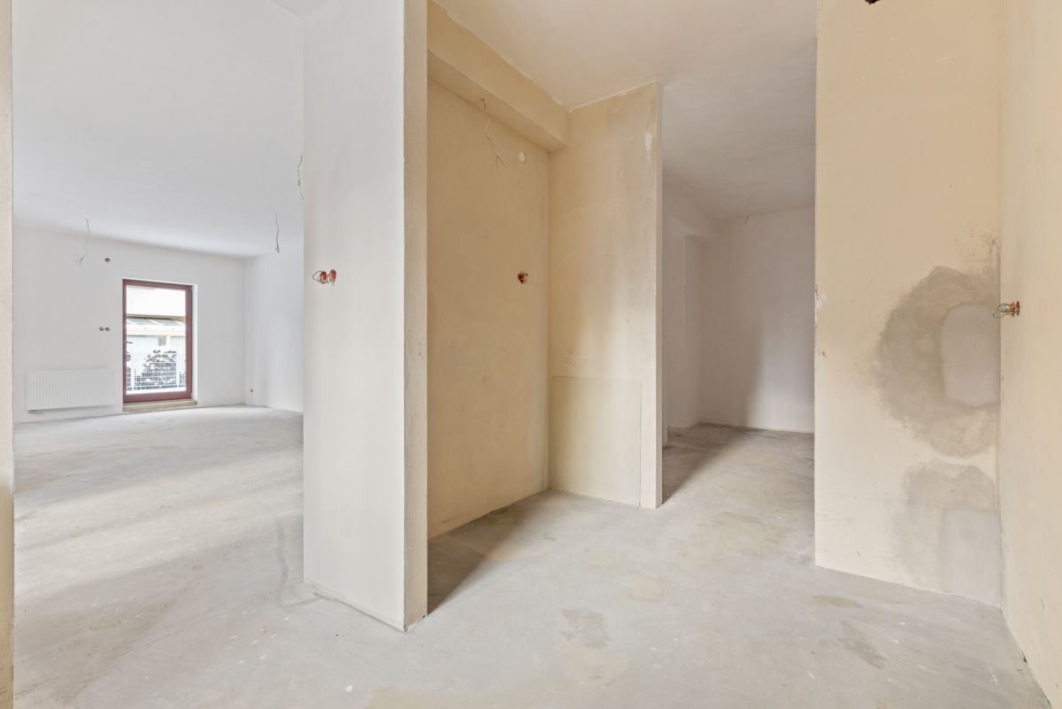 Mieszkanie w stanie deweloperskim do wykończenia, na chwilę obecną z dwiema sypialniami lecz bez problemu istnieje możliwość wydzielenia w hallu dużej łazienki, dzięki temu 9,5 metrowa łazienka z oknem może stanowić dodatkowy pokój.