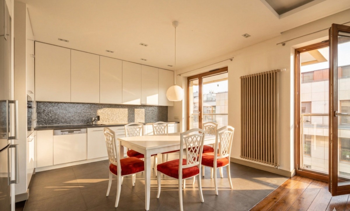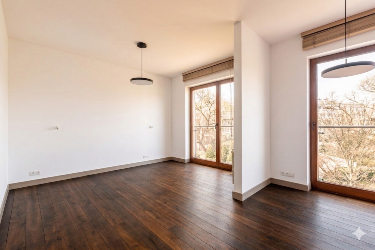 Mieszkanie jest sprzedawane bez mebli wolnostojących widocznych na pierwszym zdjęciu.