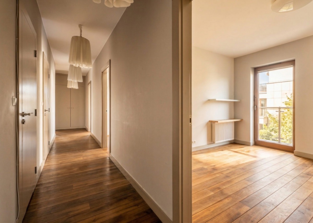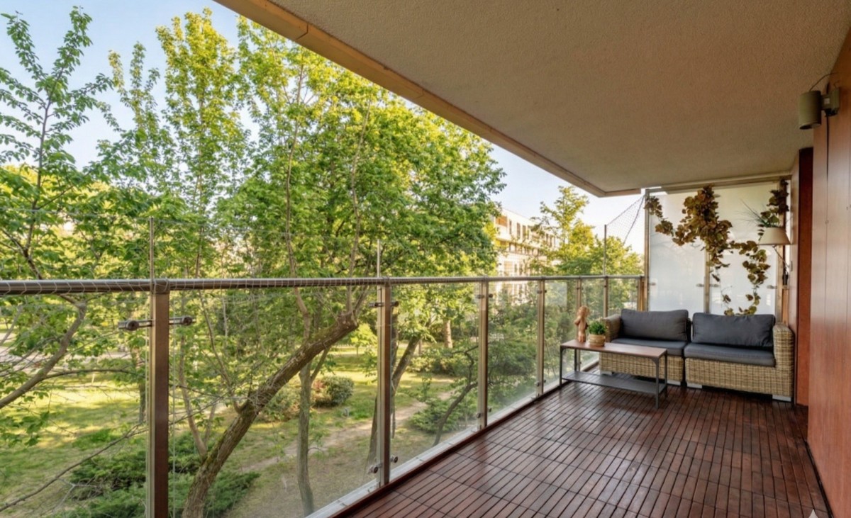Ten przestronny apartament znajduje się w kameralnym 4-piętrowym budynku z bezpośrednim widokiem na park, do którego dostęp mają wyłącznie mieszkańcy osiedla Ostoja Wilanów. Dzięki swojej powierzchni i aż 3 balkonom jest idealną alternatywą dla domu jednorodzinnego.