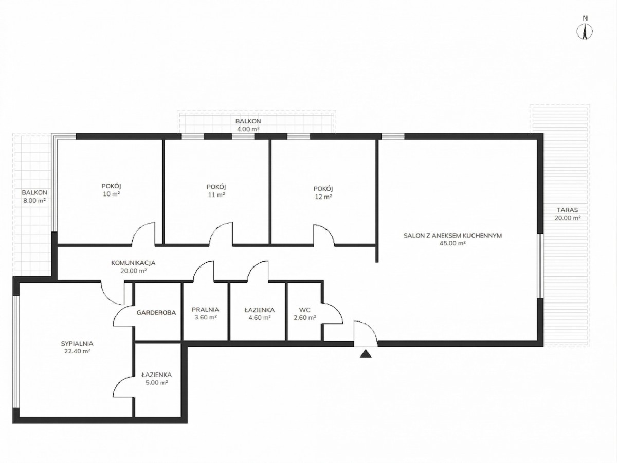 * sypialni z własnym balkonem (10m2),