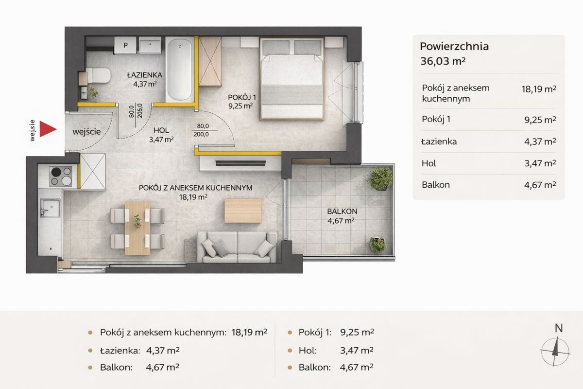 Nowoczesne mieszkanie 2-pokojowe, 36 m² na sprzedaż - dostępne natychmiast, pełna własność z KW!